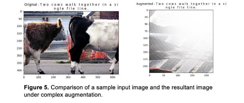 For augmentations, we chose three approaches that used simple and complex transformations, which are summarized below in Figure 2. We used the Albumentations Python package [7], which boasts fast and flexible image augmentations, to perform these transformations. We selected these functions because we wanted to create diversity within the dataset so that the model could better learn image captioning.