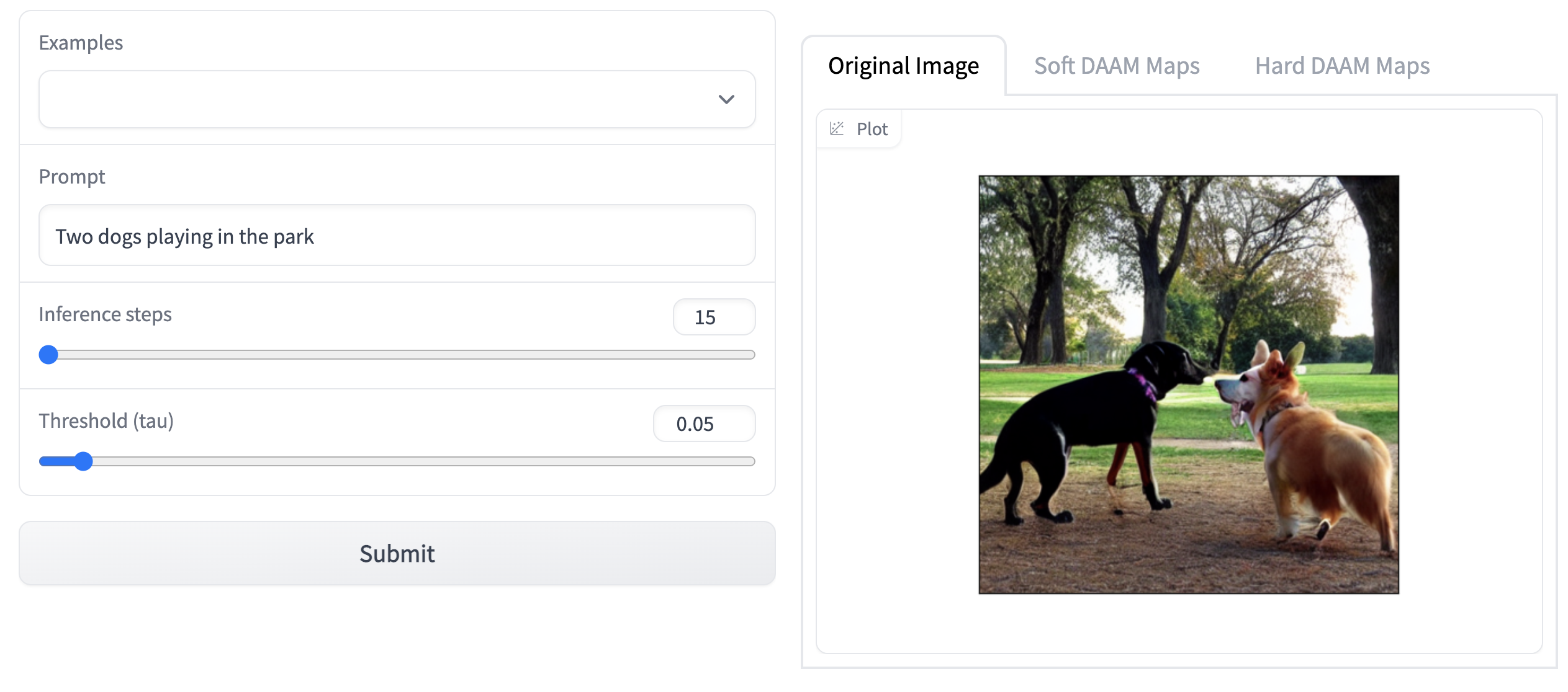 As part of the first step in the experiment, the existing codebase from the cross attention based visualization was modified to run on different text prompts than the ones provided by the authors. The results of this experiment are shown below. Note: Due to the GPU and ram limitations, the model was run on 15 inference steps and 0.05 threshold (tau) value.