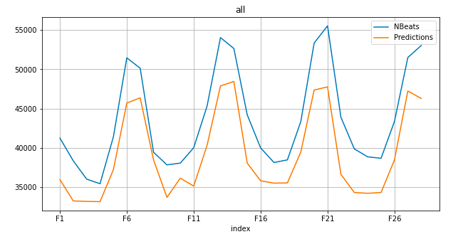 For this first task, running the author's code, we ran into a few difficulties. The first was that this ended up being a very computationally expensive process to run. We were unable to run it on the base version of Google Co-lab, so one member of our group purchased Colab Pro+, while the other tried running the code on the Discovery cluster. We were unable to figure out how to install dependencies on the cluster, so we switched the other method of running to using the clusters on Kaggle. For the majority of our computation, however, we used the cluster on Colab Pro+, which allowed us enough compute resources to run their code with different hyperparameters. Getting the code to run was fairly straightforward once compute resources were no longer a problem, as the authors did a good job documenting their code and the points at which we needed to update for our own environment. However, even with sufficient compute resources, it took many hours for their code to run. While this meant we were grateful to have started early and had enough time for the code to run so that our experiments could be conducted, with the short turnaround for Milestone 2 it also meant that, to have enough time to complete our analysis, we could test fewer hyperparameter adjustments than we had hoped. Since for each hyperparameter change we needed to run the entire top-level N-BEATS model again, we could change fewer parameters.
